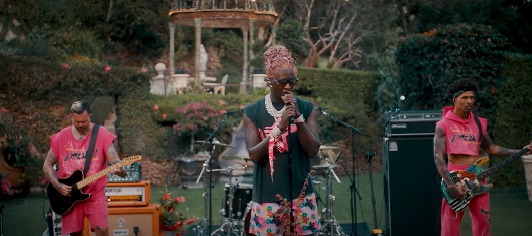 Hinting the release of his forthcoming album ‘PUNK’ that is set to drop in October with his pink accented outfit, Young Thug performs four brand new tracks named “Die Slow”, “Droppin Jewels”, “Hate The Game”, and “Tick Tock”, all of which he recently teased at his set during Rolling Loud this past weekend in Miami. Joined alongside the band Damnage Gooods and the iconic drummer Travis Barker, Thug also performs a Rock rendition of his hit “Ski”. Make sure you give this one a spin!