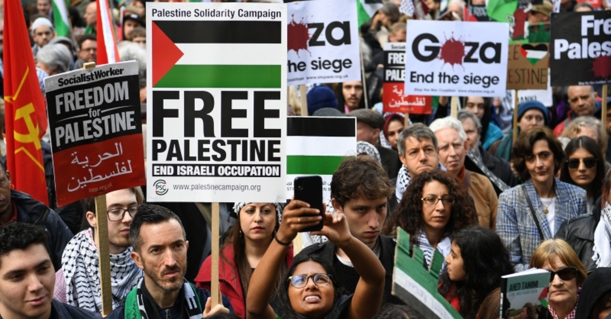 Taking to the streets of London on Tuesday (May 11) activists waving flags, banners and placards, featuring messages including “Freedom for Palestine”, calling for an end to the growing unrest.